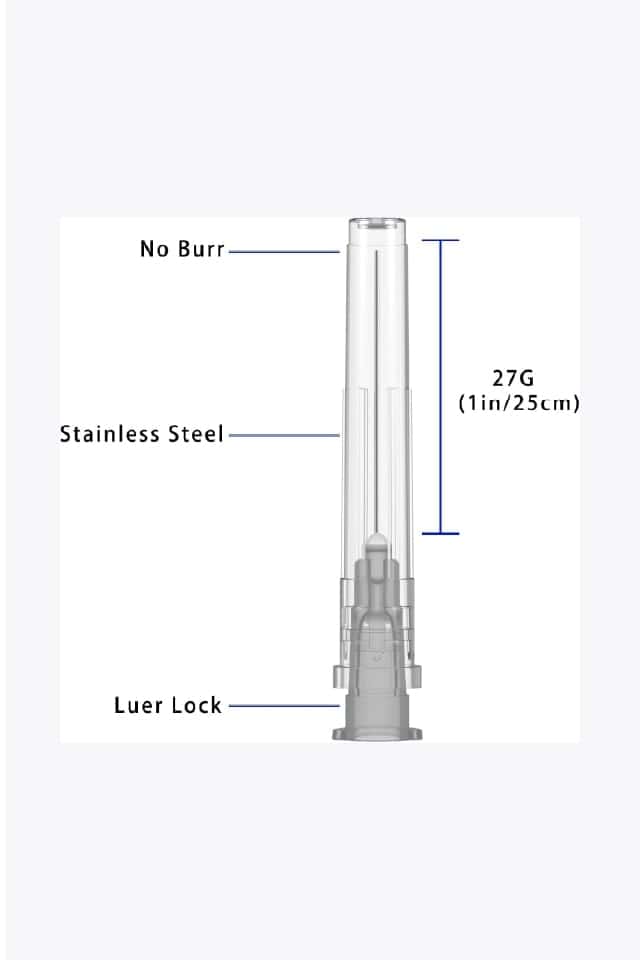 The 27G 1 Inch (25mm) needle is thinner and designed for procedures requiring minimal pain and precise control. It is frequently used for subcutaneous injections, cosmetic procedures, insulin administration, and delicate medical treatments where patient comfort is a priority.